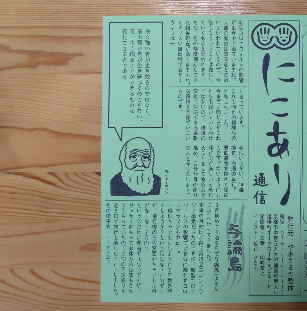 では早速。にこあり通信2020年4月号1ページ目です↓