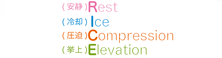 ※Rest(安静)、Ice(冷却)、Compression(圧迫)、Elevation(挙上)の頭文字をとったもの