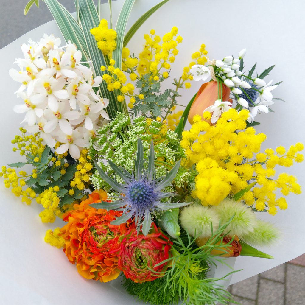 というわけで、ミモザ入りの花束にしもらったものがこちら。