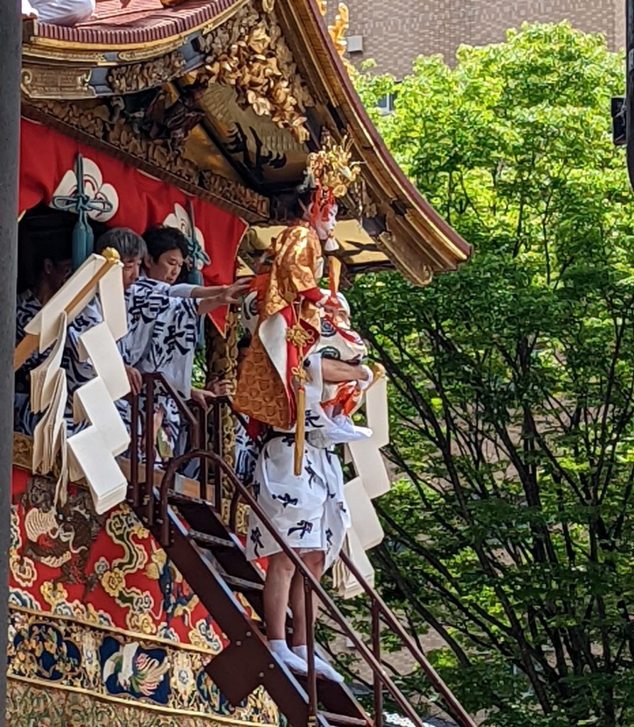 この後は辻回しか~と思っていたら、その前にお稚児さんを鉾から降ろすという大きな工程があったんですね。